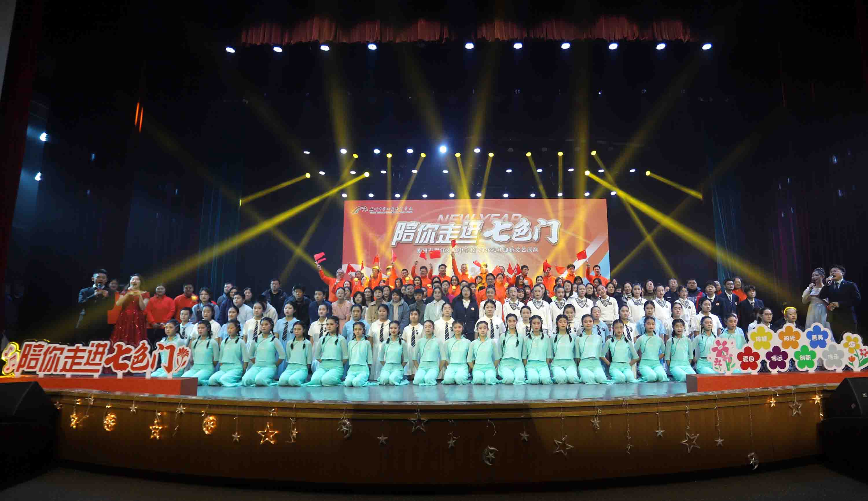运河汤汤载文脉,胥苑融融启新章。今天(1月5日),新年来临之际,苏州市胥江实验中学校校园内暖意涌动、欢声如潮,2026元旦迎新文艺展演在此隆重举行。这场以“陪你走进七色门”为主题的文艺盛宴,既是学子们艺术才华的集中绽放,更是学校“每片叶子都是一朵独特的花”育人理念的生动实践,将多元培养的丰硕成果与迎新的美好期许深度交融,书写出新时代校园育人的鲜活答卷。