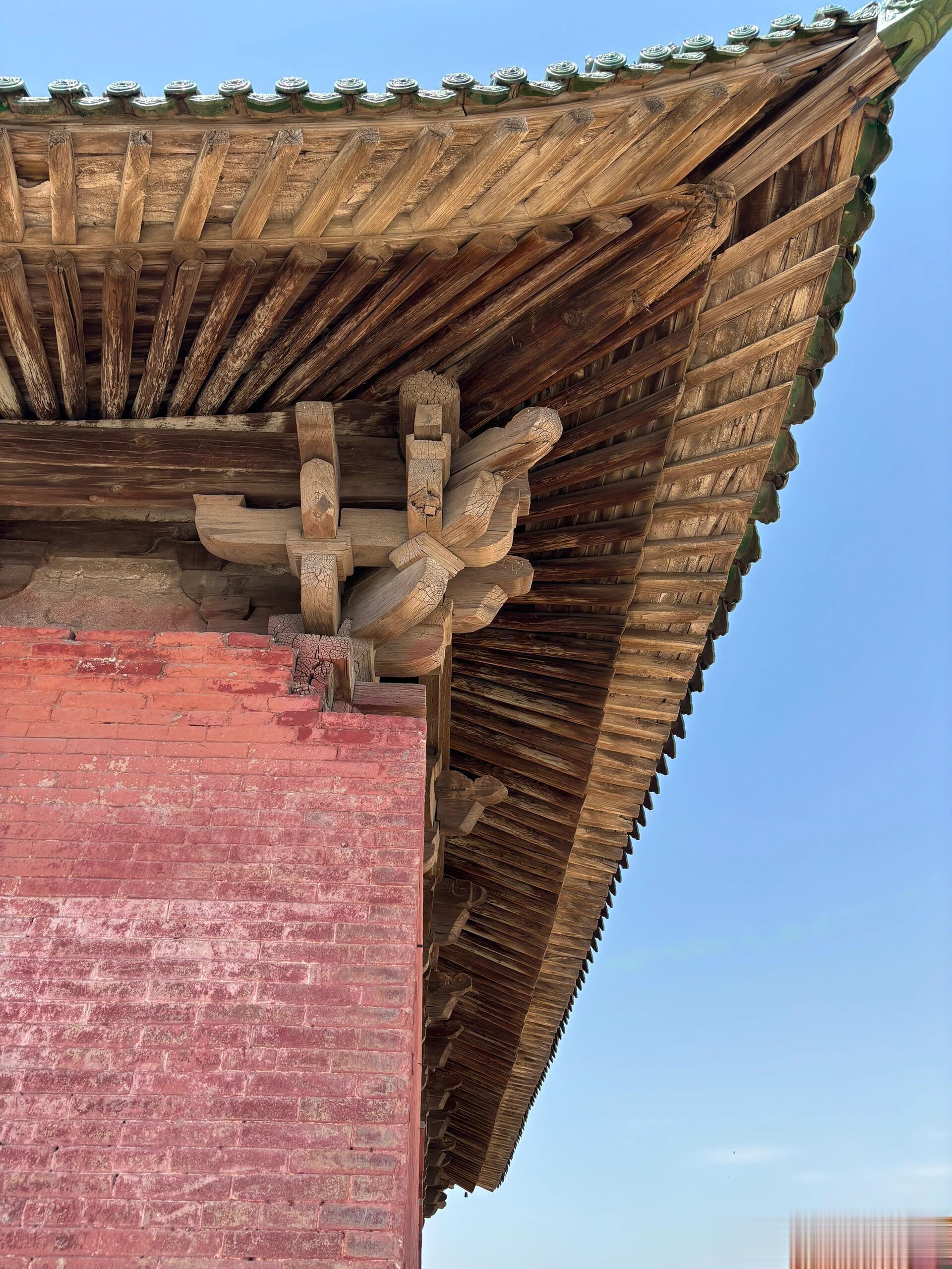 走进大殿,首先被扑面而来的空旷感震撼。彻上露明造的梁架结构毫无保留地展现在眼前,四铺作出单抄的斗拱简洁到近乎朴素,没有华丽的彩绘,没有繁复的雕花,甚至连补间铺作都稀疏得可怜。这种"简陋"让初看者难免失望,尤其对比山西众多华丽的金元建筑,兴梵寺大殿显得太过寡淡。但懂行的人却能从中读出北宋建筑的真味——斗拱不再是炫耀技艺的装饰,而是回归承重本质,每一朵斗拱都精准地落在受力点上,用最简洁的方式撑起整座屋顶。