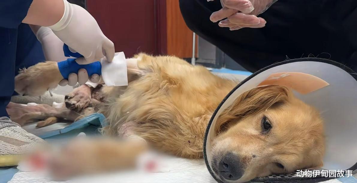大家眼前看到的是一只出了车祸被撞断腿的金毛。