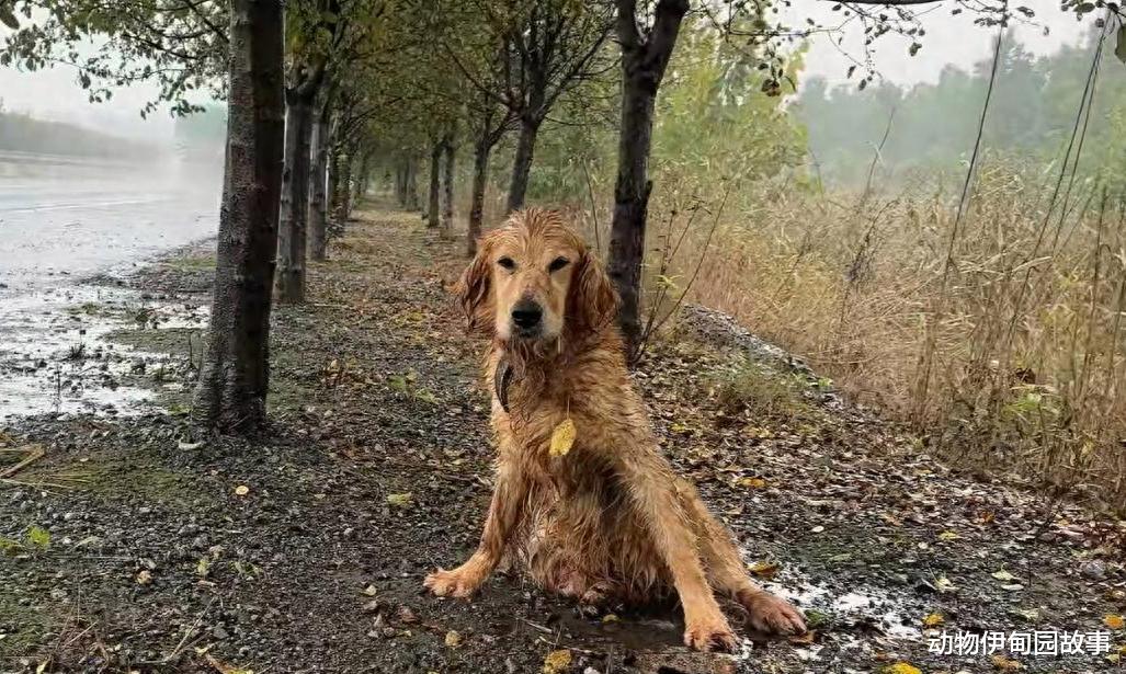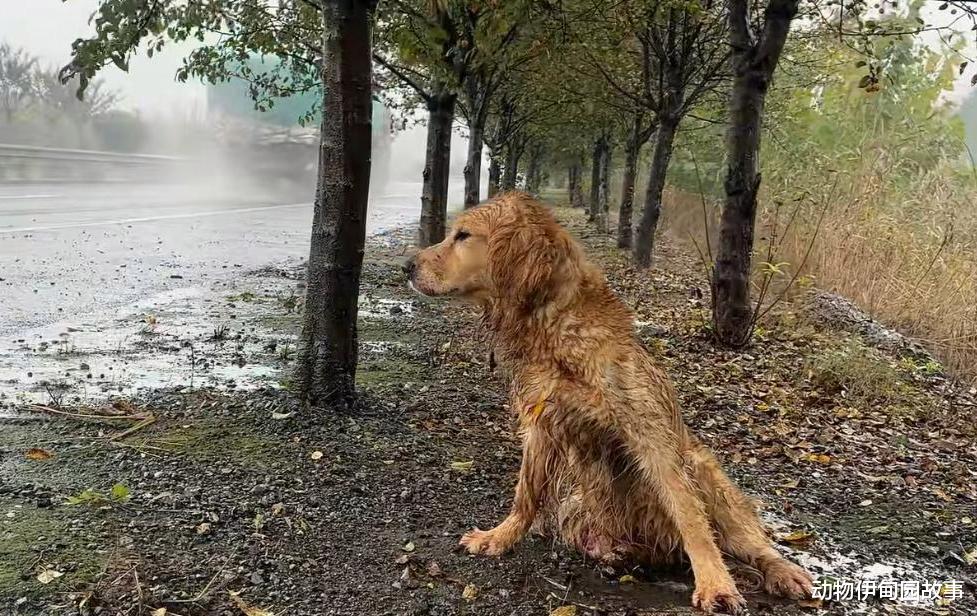 金毛被汽车撞了之后,肇事司机扬长而去,留下可怜的金毛在雨中自生自灭。