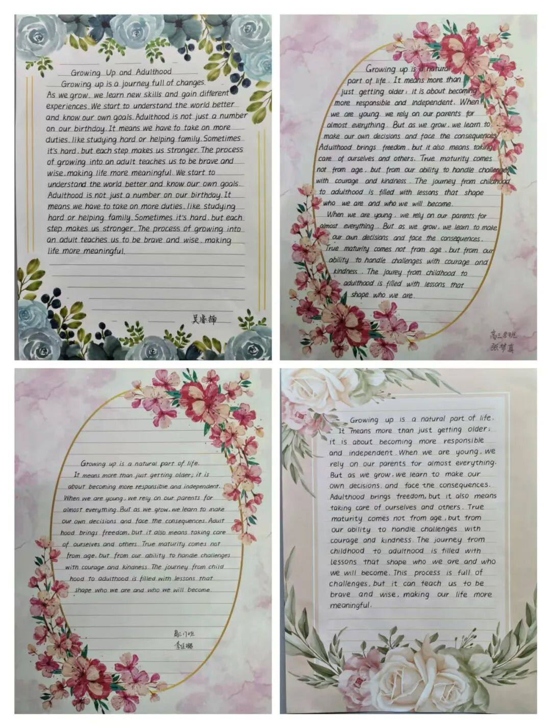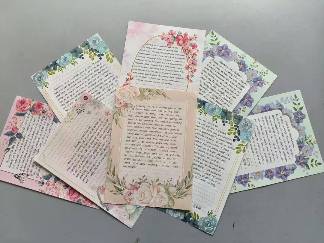 本次大赛紧扣“成长”与“成人”两大关键词,面向全体高三学生征集作品。同学们踊跃参与,将个人成长故事、对成人责任的理解、对未来的期许融入字里行间:有人回顾高中三年的蜕变,书写从懵懂到成熟的心境变化;有人聚焦成人后的担当,阐述对家庭、社会的责任认知;还有人以细腻笔触,表达对陪伴成长的师长、父母的感恩之情。书写过程中,大家不仅追求字母的规范流畅、卷面的整洁美观,更注重情感的真实传递,每一篇作品都是对青春的注解,对成年的礼赞。