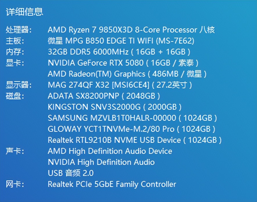 显卡为索泰RTX5080 AMP,高刷新率显示器一定要搭配高端显卡,不然就是浪费手里的票子!