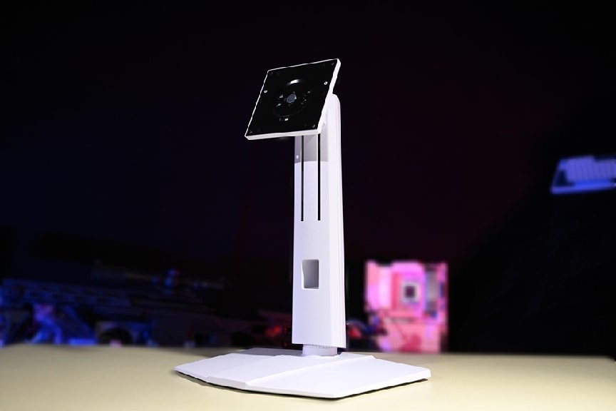 显示器支架整体也是珠光白色调,靠下部位有走线孔。