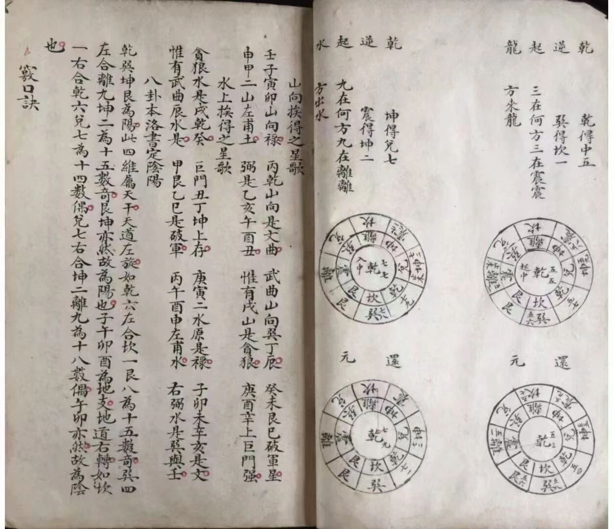 核心内容繁复全面,涵盖相地全维度核心要点。基础理论板块筑牢根基,五行变用、天机秘诀详解相地核心的五行理气逻辑,元空大卦五行、后天坎离六十八卦图直观呈现理气推演体系,搭配三元审运捷诀,为相地吉凶判定提供核心理论支撑;河图四大局、洛书九星临方断验则融合传统术数精髓,进一步丰富相地理气维度。实操技法板块堪称全书精髓,诸局来龙出水图说以图文结合形式,清晰拆解龙脉走向与出水格局的适配关系;山向挨得之星歌、窍口诀以口诀形式总结相地关键要领,便于记忆与实操;水龙秘法、山龙论诀、龙胎等内容,分别聚焦水龙、山龙的辨识与应用,针对性极强。