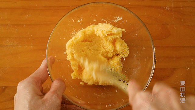 面团静置期间准备椰蓉馅。将黄油隔水加热至完全融化,全蛋液隔水加热至30度左右。把全蛋液倒入黄油中,充分搅拌使其乳化均匀。过筛加入糖粉,再加入椰蓉和奶粉,继续搅拌均匀,最终的椰蓉馅是比较柔软的团状。