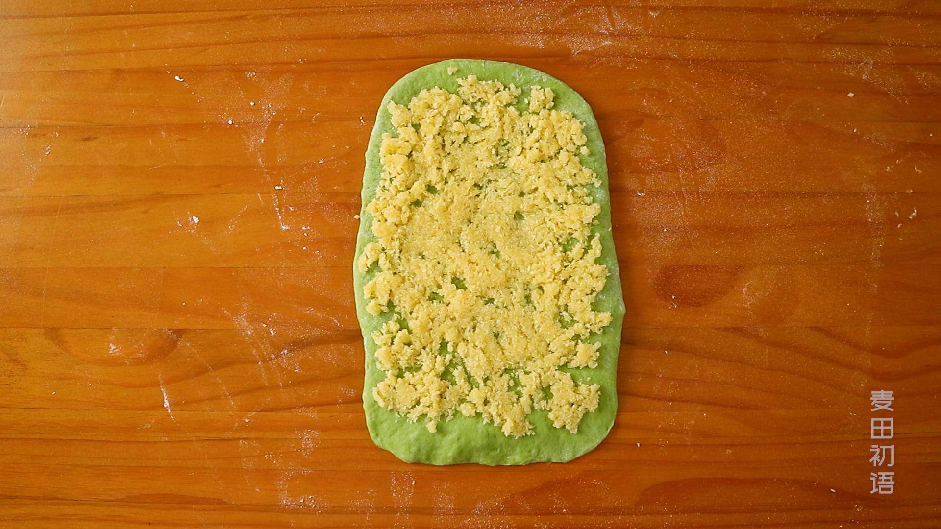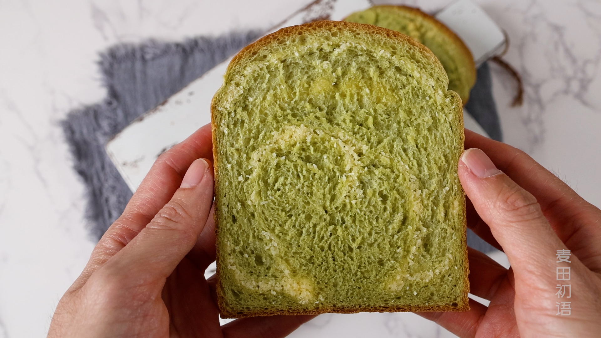 斑斓椰蓉吐司是我很喜欢的一款吐司,斑斓的清香加上椰子的馥郁,非常浓厚的东南亚风情。由于采用卷曲和折叠的做法,这款吐司很有层次感,在绿色的斑斓面包体中夹杂着香甜的椰蓉馅,令人越吃越上瘾。