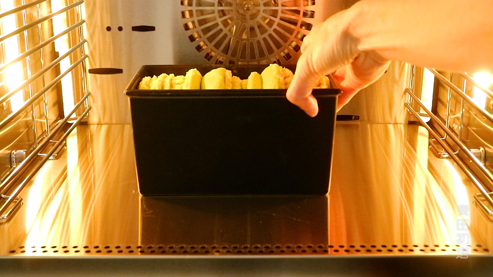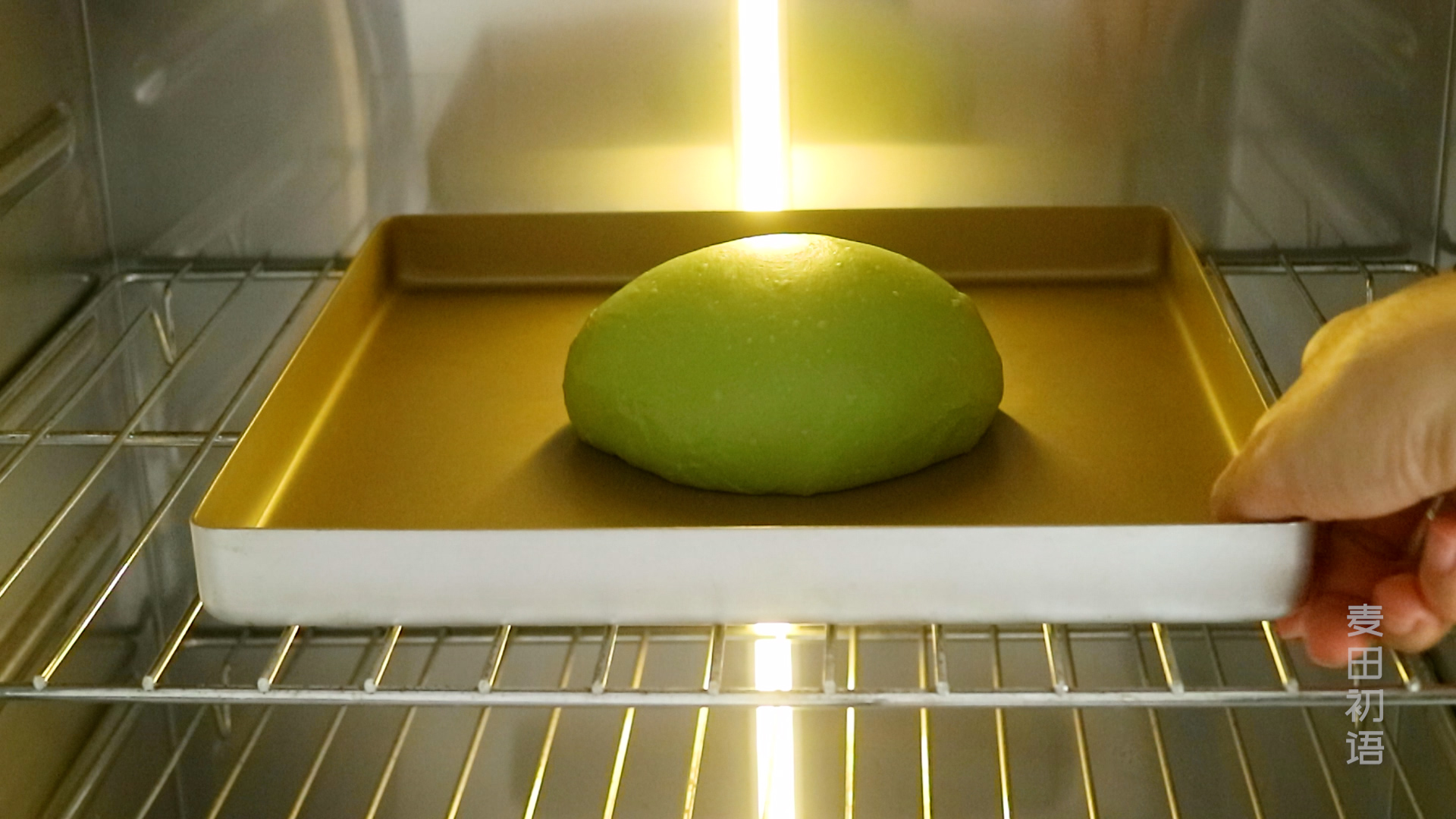 送入发酵箱进行二次发酵,设置温度为35度,湿度为85%,如果没有发酵箱则用烤箱发酵。在面团发酵快要完成时用180度预热烤箱。