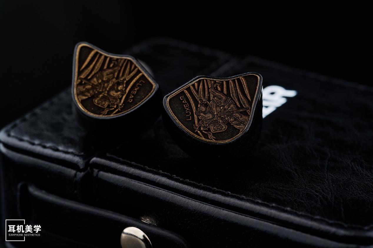 视线转到耳机本体,Valor的黄铜雕花面板相当吸睛,格调十足。为了契合 “Valor”(英勇)的产品名,LUXEAR采用了高端腕表常用的精雕工艺,在面板上镂刻出中世纪十字军骑士的图案,细节刻画得十分精致,战马、骑士、盾牌等元素的轮廓都得到了细腻的描绘,凹凸的纹路让整体立体感拉满。经过氧化处理的黄铜面板,呈现出深沉的色调,自带一种历经岁月沉淀的厚重感,搭配精湛的雕花工艺,整体韵味与艺术感都格外强烈。