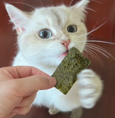 很多铲屎官吃海苔时,会被猫咪凑过来蹭手、歪头盯的模样打动,忍不住想分一片给它