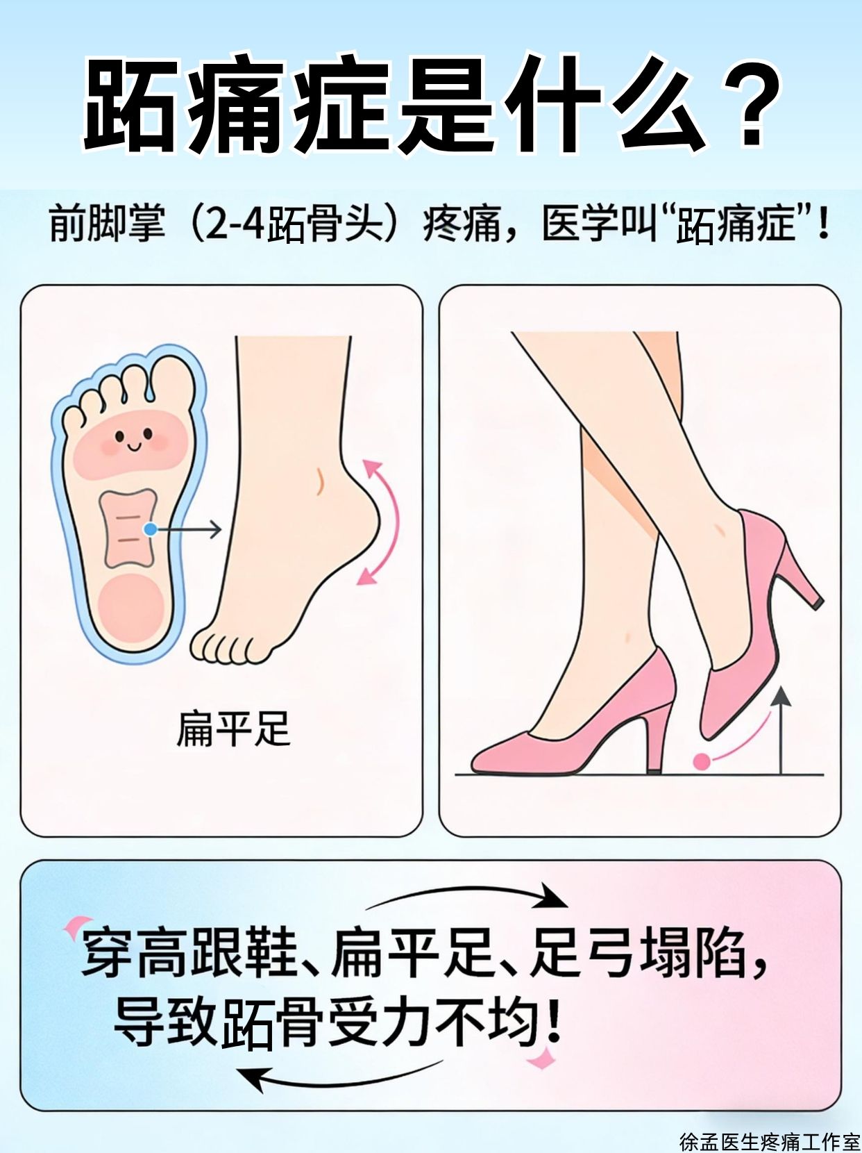 👉 穿高跟鞋、扁平足、足弓塌陷,导致跖骨受力不均!