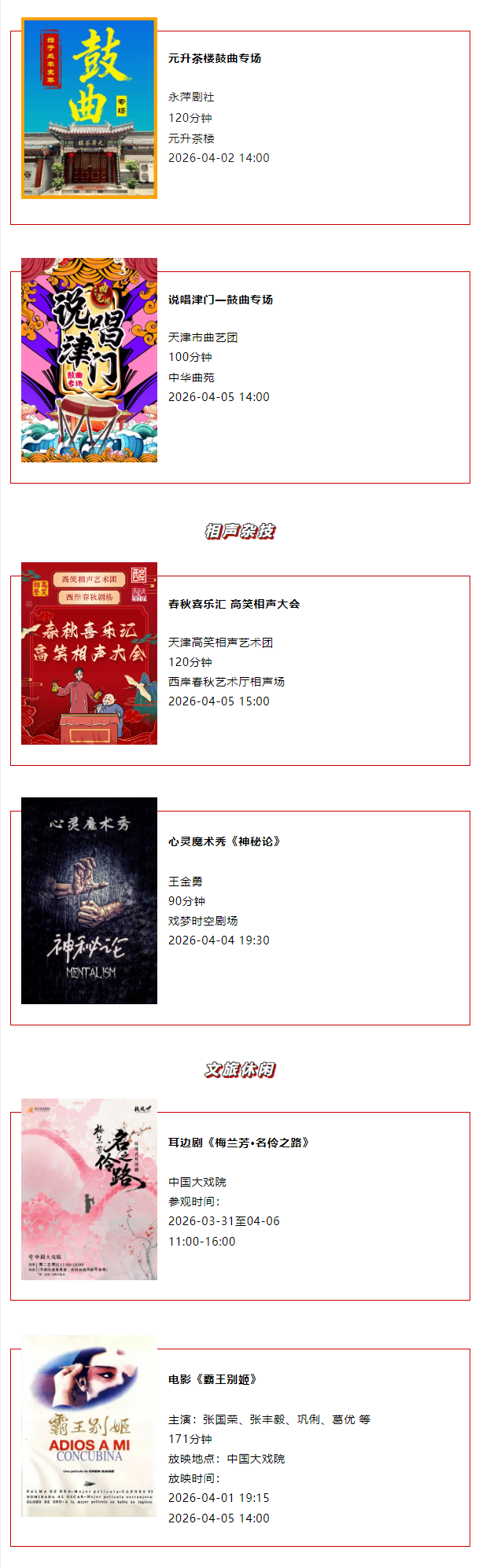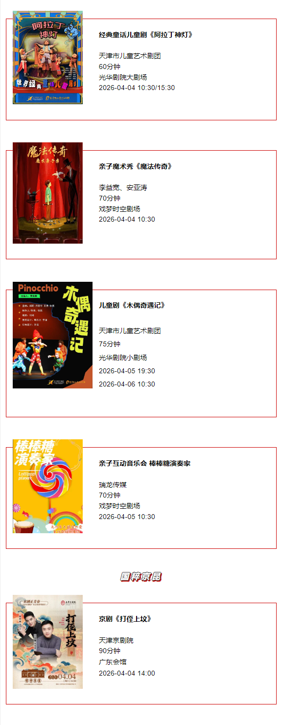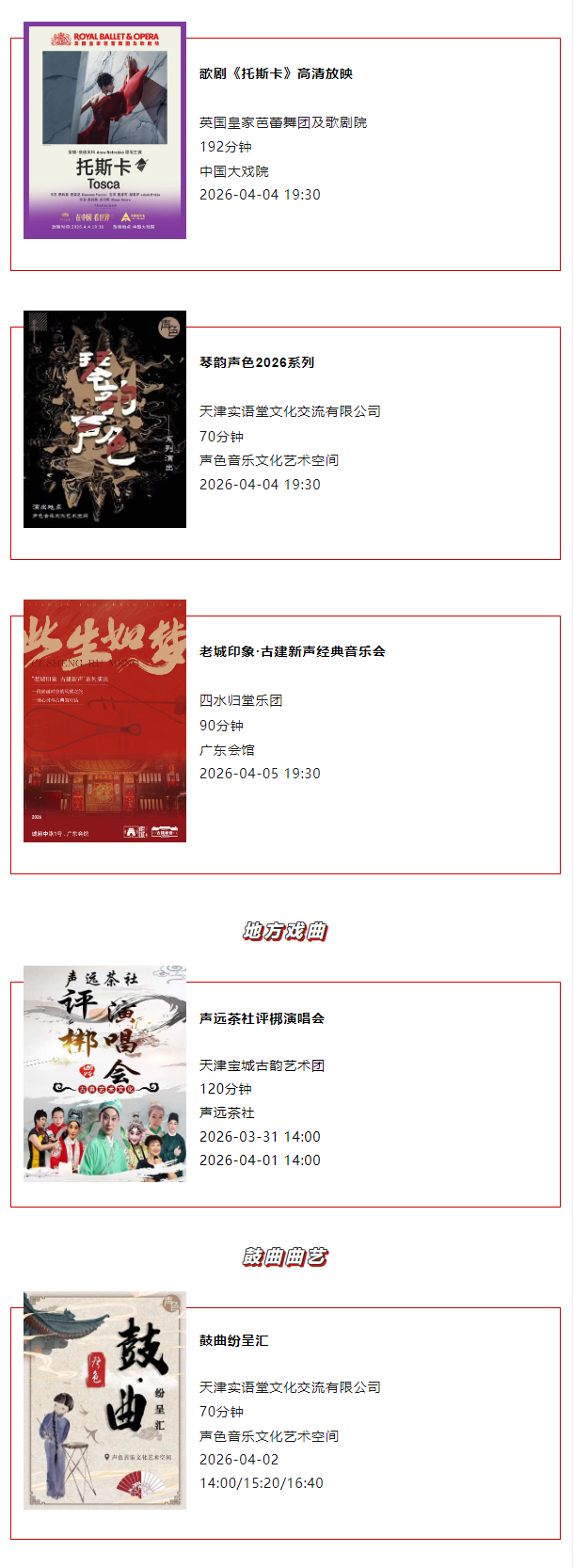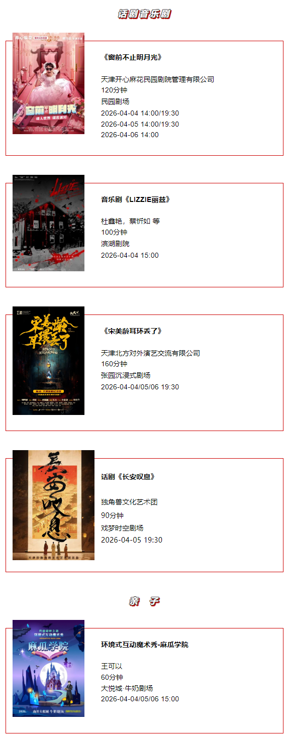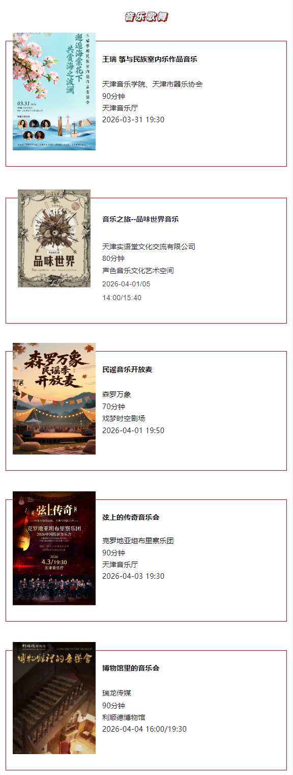 天津一周演出资讯 (3.31-4.6)