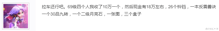 那么作为一个散人玩家,想要牟利,更建议直接当队长,车费15万游戏币一人,光车费就能有个60万。一般来说,队长的铃铛数量会是队员的两倍,如果这次他是队长,那么他的铃铛大概就是30个左右,按4个铃铛一次,足够摇奖7-8次,综合收益至少一百万梦幻币往上。