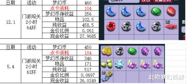 通过对门派闯关活动收益记录并对比,不难发现,就现在的门派闯关连二药都舍不得给你的情况下,收益往往只有500万梦幻币左右,那些拿高魔诀的狗托除外,反正我已经很久没拿过好的高魔诀了,所以就我来看,铃铛活动甚至比门派闯关更好。但对于普通单开玩家来说,效率不稳定,收益自然不高,所以如果想获利,要么当队长,要么玩五开。你的铃铛活动收益如何?