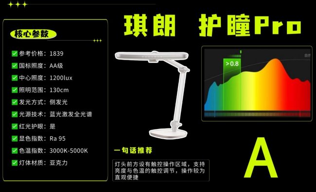 5、高性价比实力领跑护眼灯第五名:琪朗护瞳Pro