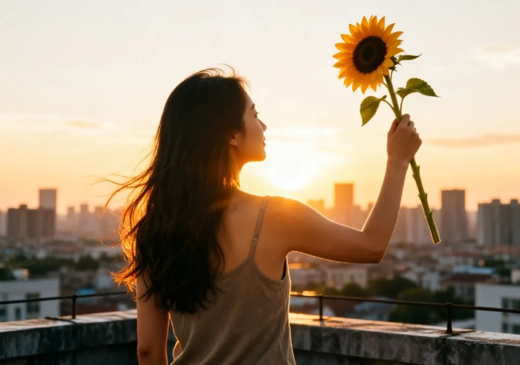 那天,我就在这种情绪里,拐进了楼下那家快要打烊的花店。老板正在收拾剩下的花,顺手抽了一支半开的粉色玫瑰给我:“姑娘,今天辛苦了,送你啦,要开心哦。”