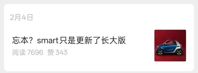 关于把车越做越大的这件事,smart很自信。今年2月,smart官方公众号还专门发文diss了一下相关的质疑。但在要求别人格局打开的同时,也许其也应该“Open your eyes”,因为从最新的价格行情和销量数据来看,市场对越来越大的smart始终不怎么买账。