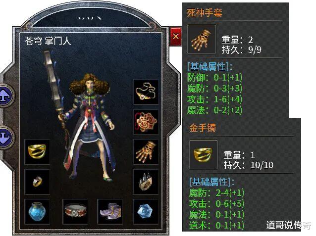 第二,炸裂手镯系列再来看看手镯搭配,这属性看了真是炸裂到眼花。魔御4攻6魔1道1金手镯真牛,也只有老百区的攻6金手镯属性很接近。另一个死神手套属性丝毫不逊色,它多加了1点防御,3带你魔御,然后还有攻6魔2的输出,只能用逆天来形容了。