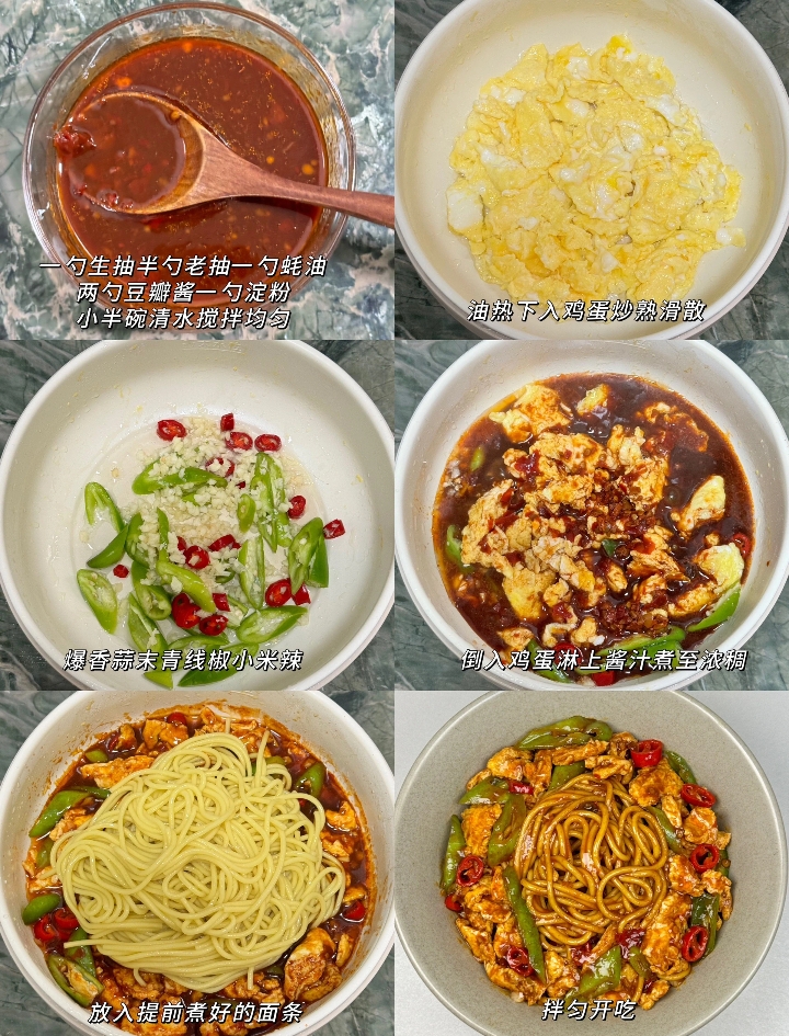 ✅️ 青椒鸡蛋卤面:鲜辣爽口,解腻开胃