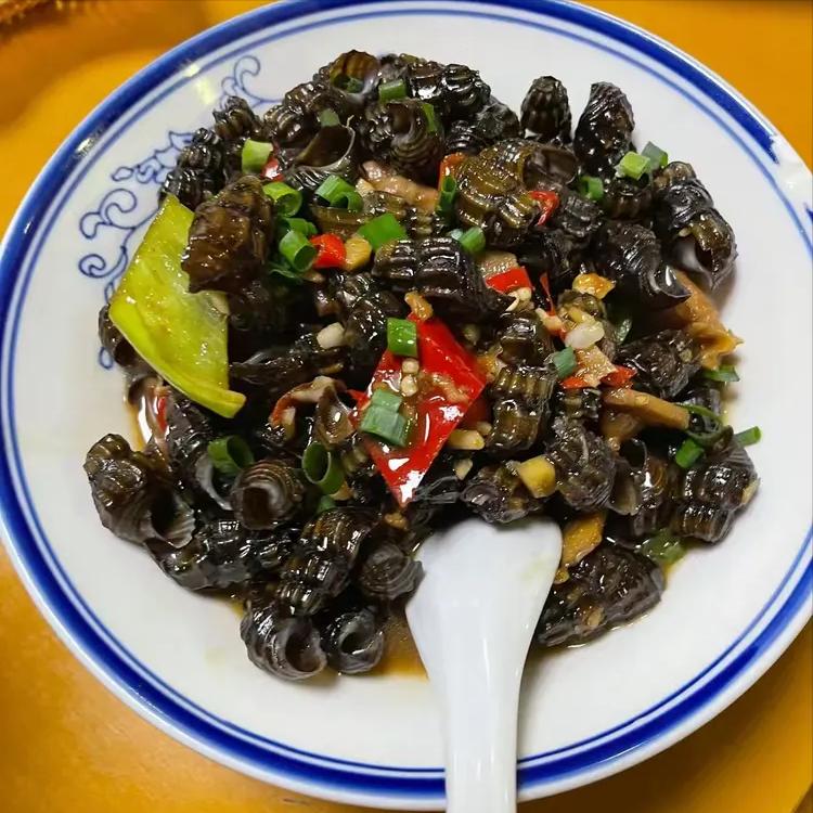铁螺得在清水里养三天,吐净泥腥,剪尾后用茶油爆炒,再下紫苏、辣椒猛火炖,辣得人“嘶哈”吸气却停不下筷。