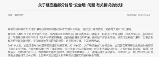 而且,如果真的是为了安全,这道墙要不要砌,这个路段的交通堵塞程度和所发生的人员伤亡事故,是不是到了必须砌围墙来阻挡游客观景的地步,应该由交通运输部门来决定,而不是景区单方面的行为。据报道 ,陕西省延安市宜川县交通运输局一工作人员称,延壶公路景区这段路,不属于交通运输局管辖范围,归壶口景区管理局管理。这就更让人怀疑,景区的真实动机是什么。