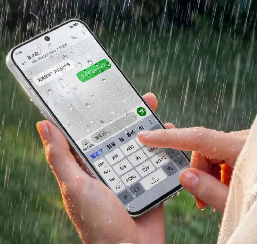 行业首发超级暴雨触控,芯片级触控黑科技,屏幕沾水照样抢单回消息,38 种水都能用,30 倍红色暴雨下也能用。湿手油手泥手都能用,戴手套也能用。