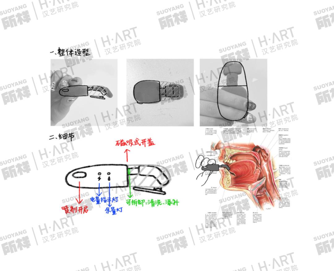 比如汉艺Louis Chen同学就为爷爷做了一个项目。老人患有冠心病,能救命的硝酸甘油药瓶太小很容易找不到、药片取用也不方便,因此他特别希望能帮爷爷找到一个更方便、更安全的解决办法,也希望这个办法能帮到更多像他一样的老人,于是他和小组成员一起设计了一款面向老年冠心病患者的硝酸甘油气雾剂。
