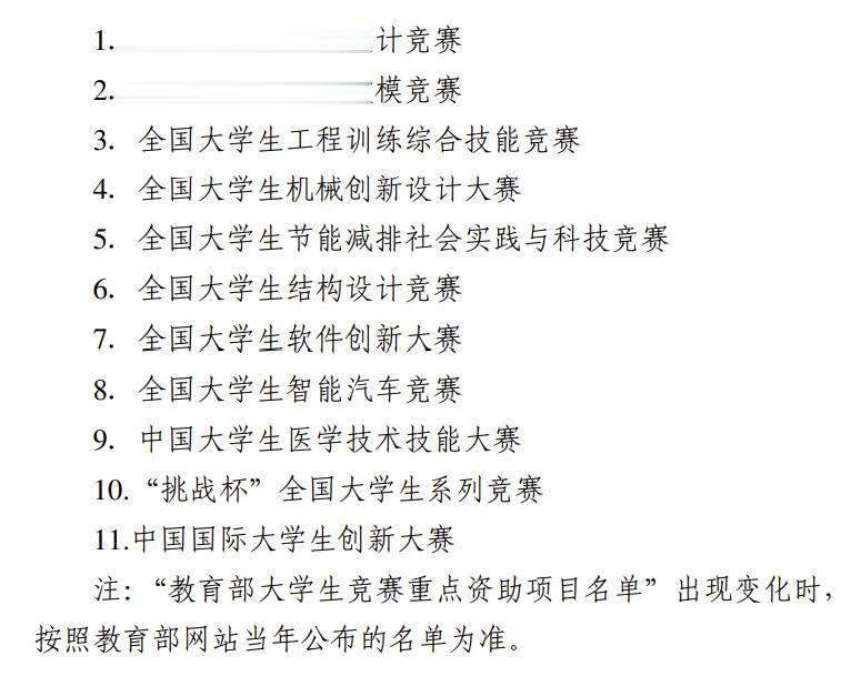 推免生进行综合素质加分时,对竞赛获奖等级的要求提升,从“国家三等奖以上”提升至“国家二等奖以上”,且须在学校认定的全国性竞赛名单中。