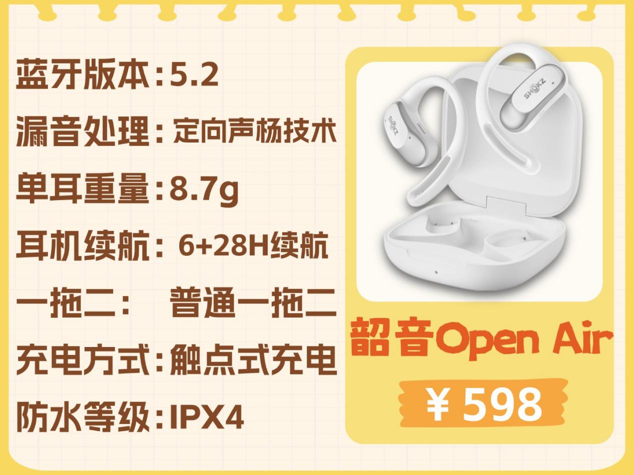 如果你追求高性价比,对音质、舒适度和性能有综合需求 ,虹觅Ultra是不错的选择;如果你注重品牌,对佩戴舒适度和音质的均衡表现有要求,小米开放式耳机和韶音Open Air可以考虑,其中小米开放式耳机综合续航更有优势,韶音Open Air在音质细节处理等方面较为出色。