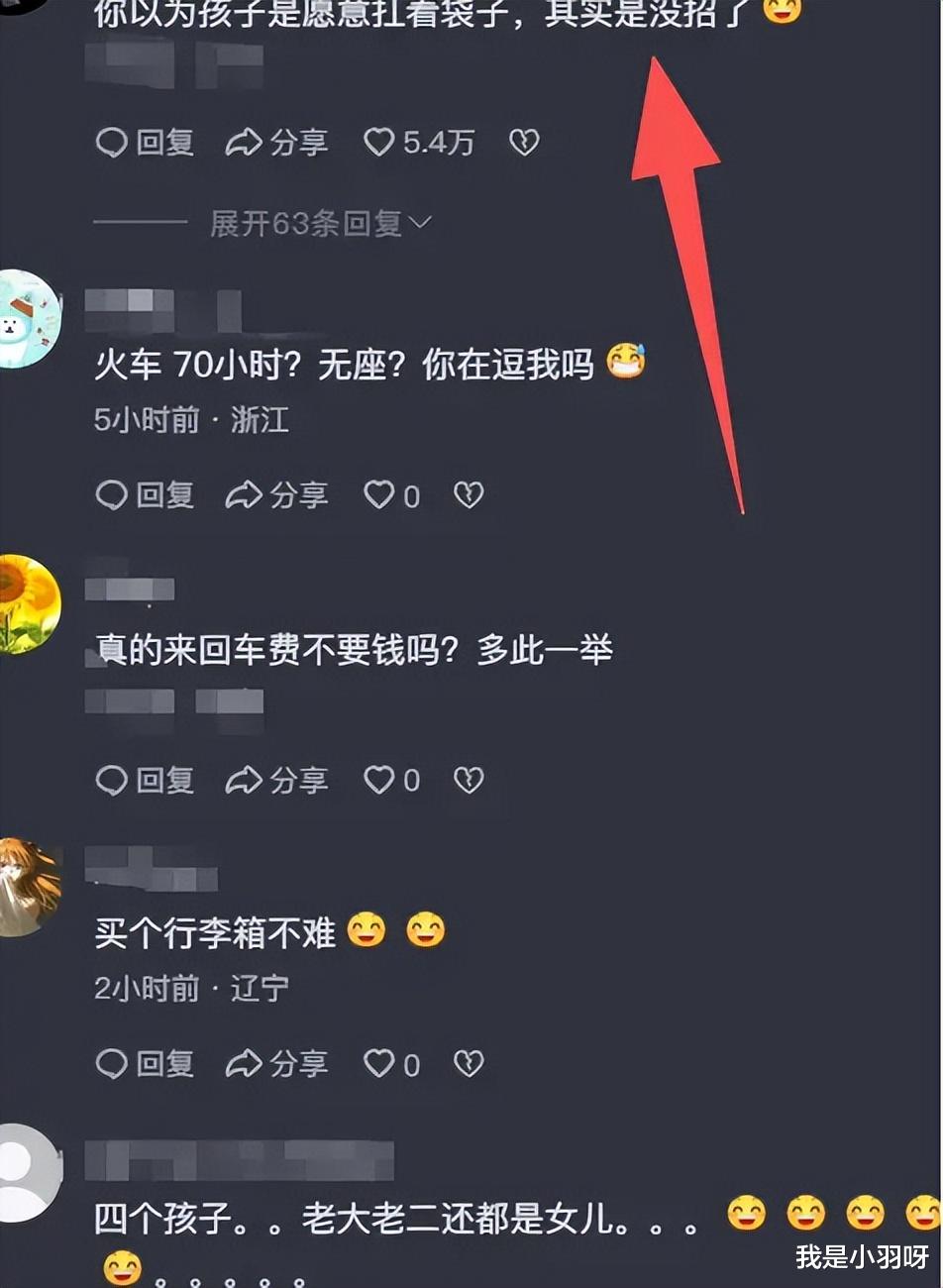 网友们的吐槽一下子就铺天盖地来了。有人说 “连几十块的行李箱都买不起,还生四个孩子”,还有人说 “邮政寄 20 公斤行李才 92 元,非得让女儿遭这份罪”。