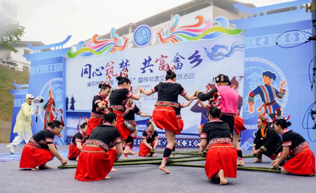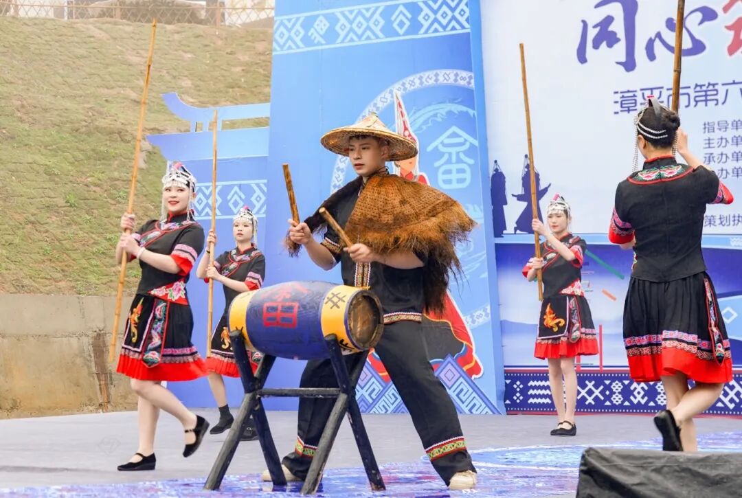 畲族歌舞展演:作为福建省第八批省级非物质文化遗产的畲族山歌,宛转悠扬、清越绵长,唱响畲乡古韵。欢快热烈的竹竿舞随节奏起落,开合腾挪间尽显民族风情。