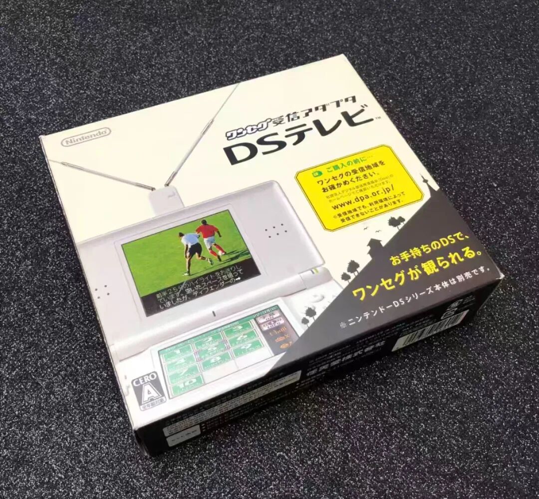 这是专为NDS系列设计的电视接收器,首发于2007年,所以包装盒印着当时的主力机NDS Lite(NDSL),也兼容后续推出的NDSi和NDS LL等机器,还有卖家说3DS也能用。