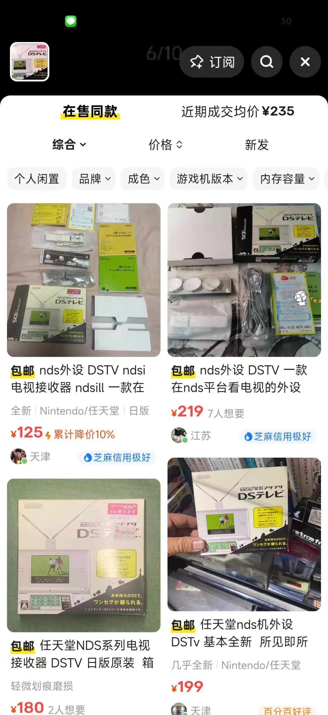 后来我用搜图功能去闲鱼找了一圈,虽然不是赈灾的那批货,但这玩意很多人卖啊,均价一两百,全部都是带盒的全套。最低一个卖125元包邮,还是全新未使用,由于我是掌机老玩家,好奇就研究了一下。
