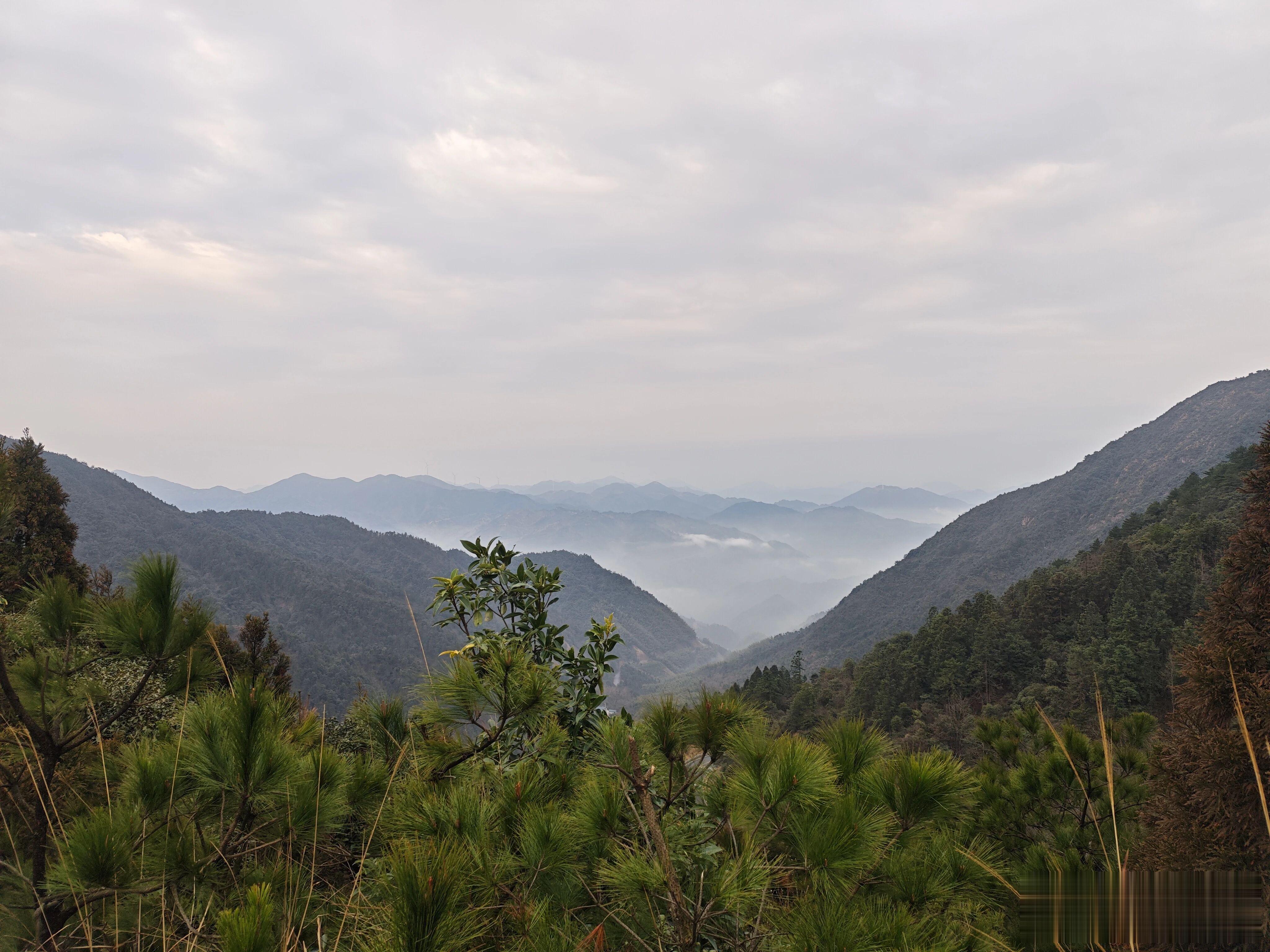 开车十几公里上山,太阳才刚刚露出头,我们在山间看到雾气腾腾的红日,之后我们开车依次经过珠湘源-分水坳-三峰岭景区