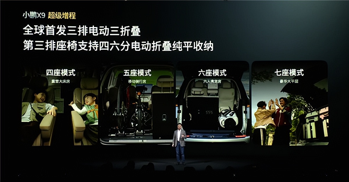 得益于前后一体化大压铸和9合1超集成后桥,X9增程依旧延续了纯电版超大空间的特性,并全球首发三排带动三折叠,支持四六分电动折叠纯平收纳,最大程度拓展使用空间。