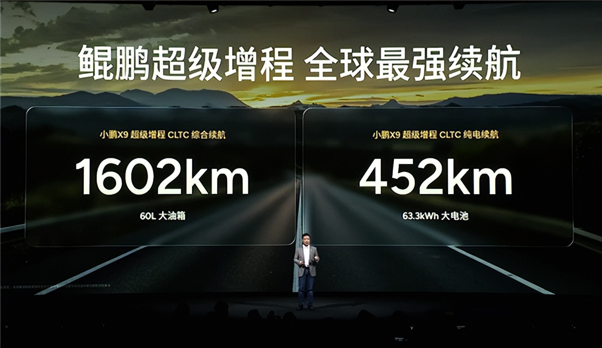 新车首发小鹏鲲鹏超级增程系统,拥有60升大油箱和63.3度大电池,纯电CLTC续航里程452公里,综合续航里程更是达到1602公里。