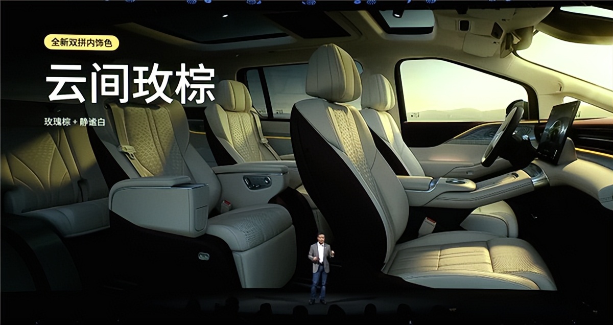 内部采用2+2+3的七座布局,第二排配备独立座椅,支持“零重力”模式以及按摩、通风和加热,独立的冷暖箱和后排娱乐屏大概率也不会缺席。