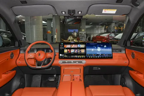 全系标配的 15.6+15.6 英寸 2.5K 双联屏,再加上仪表屏和 AR-HUD,一共四块屏幕,联动效果很好。屏幕分辨率很高,显示清晰细腻,不管是看导航还是操作功能,都一目了然。操作起来也特别流畅,没有一点卡顿,这多亏了高通 8295P 芯片的加持,据说这是目前旗舰级的车机芯片,算力充足,应对各种复杂操作都游刃有余。