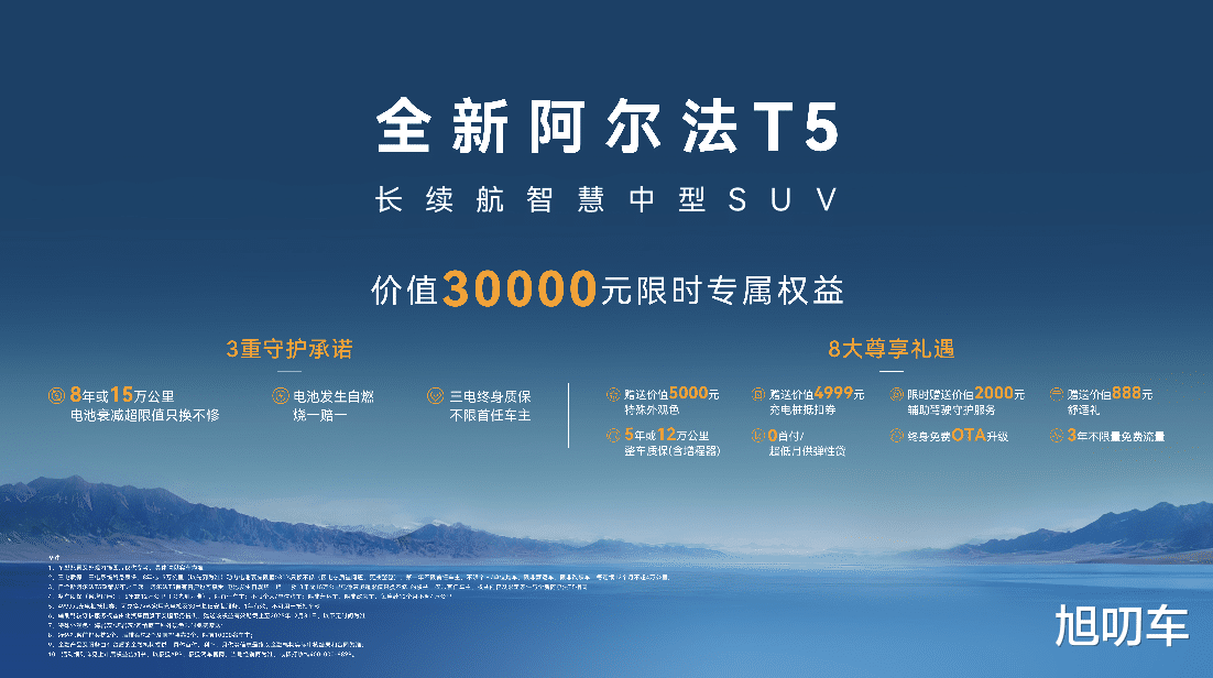 即日起下订新T5,用户还可以享受价值3万元限时专属权益,尤为“王炸”的是,极狐新T5重磅承诺“三电终身质保、电池自燃烧一赔一、8年或15万公里内电池衰减低于70%只换不修”。