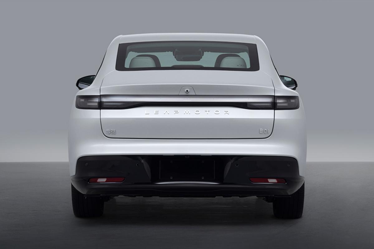 将视线转移到侧面,新车也是采用隐藏式门把手与无框车门结构,凌厉的铝合金轮毂在黑色防擦条进一步强化后,彰显出更强的攻击性,另外尾部也采用当下流行的贯穿式尾灯组造型,两侧拥有不规则间断设计,尾灯下部是零跑汽车的英文文字标识——LEAPMOTOR,辨识度非常高。