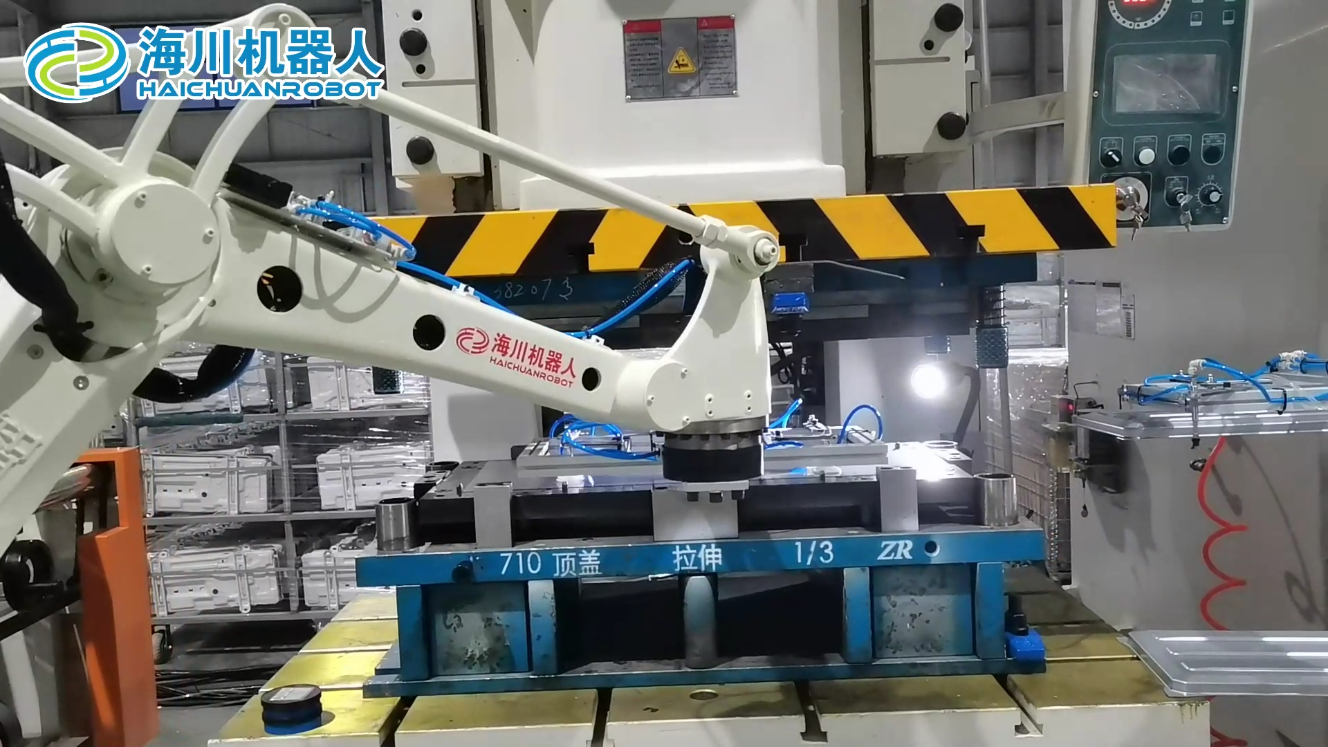 例如,在家电壳体生产线上,一台机器人负责从堆垛机取料,送入冲压拉伸工位;随后另一台机器人接过半成品,转运至切边模;再经由传送带送到焊接机器人工作站;最后由码垛机器人将成品按规整排列。