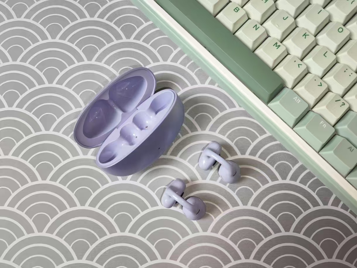 这款耳机外观精致,做工扎实,单耳重量 5.9g。设计上亮点十足,采用轻量化小圆头耳夹搭配多曲率人体工学软梁,佩戴起来十分舒适,完全没有夹耳痛感。相比入耳式耳机,佩戴体验提升明显。