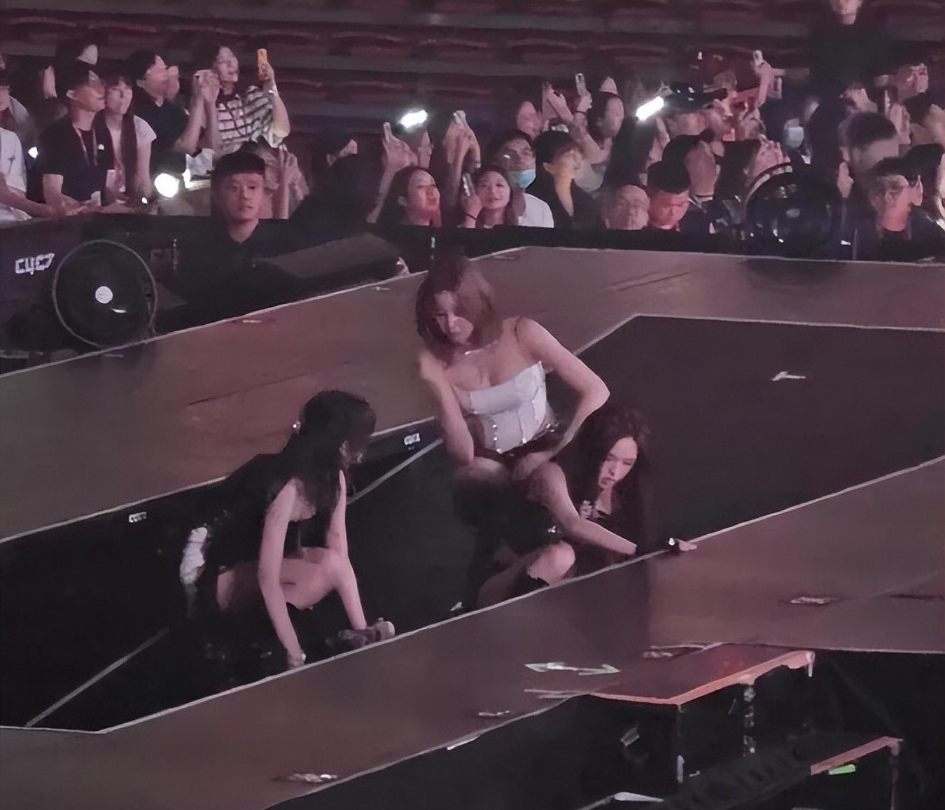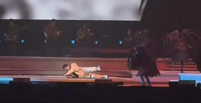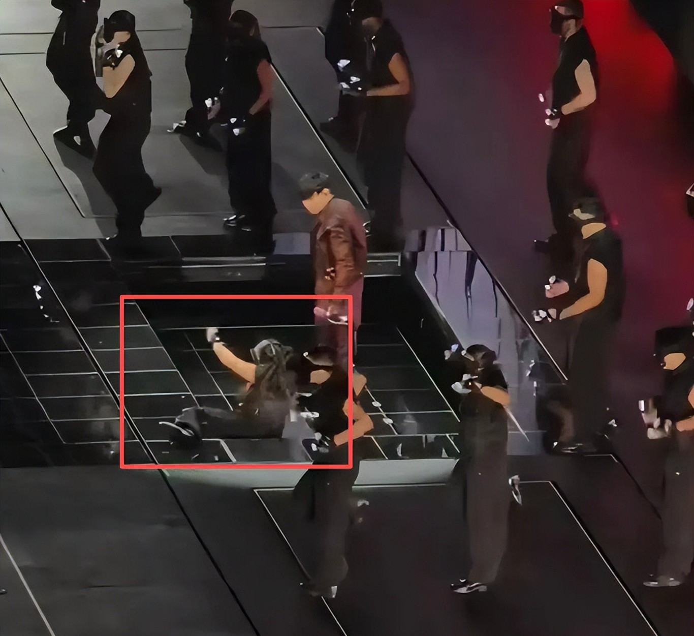 同样是在5月份,林俊杰演唱会上的一名女伴舞,在热情舞蹈时没有注意到脚边的升降台,当场便一脚踩空,摔倒在地。