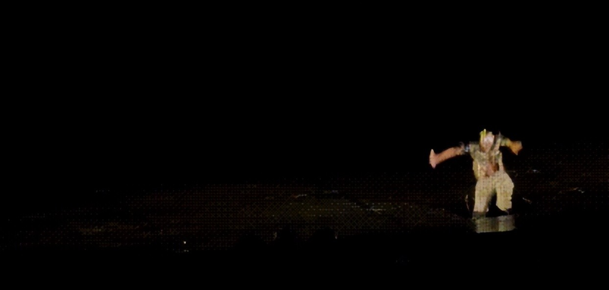 在《分享爱》这首歌结束之后,他应该是退回升降台的位置,然后慢慢落下。