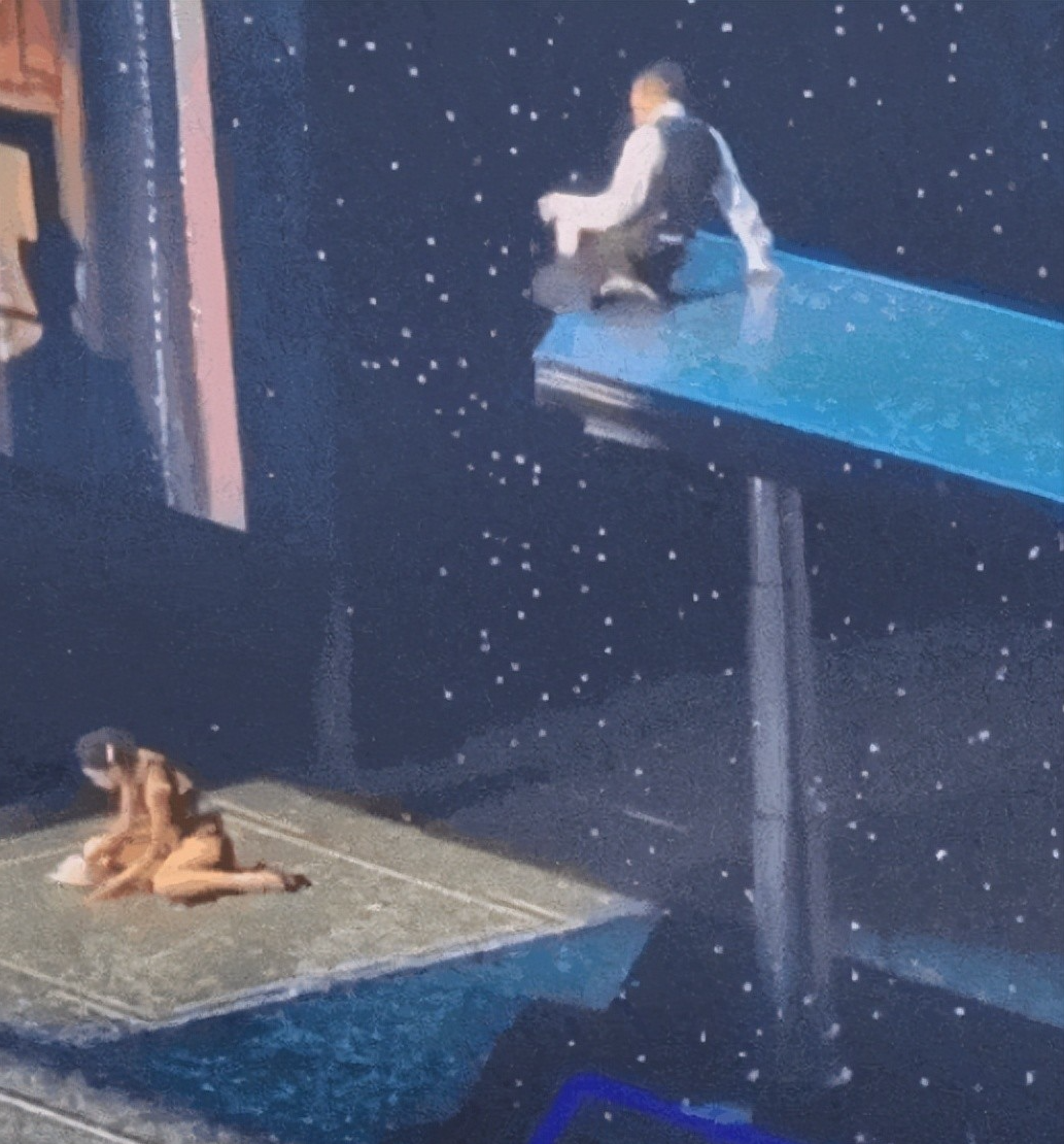 但不知道是他没走到预定位置,还是升降台提前打开,导致他瞬间从舞台上掉了下去。