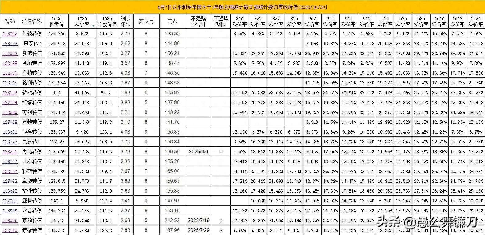 愚公自8月开始跟踪剩余限大于1年,冲击并进入强赎计数的转债!