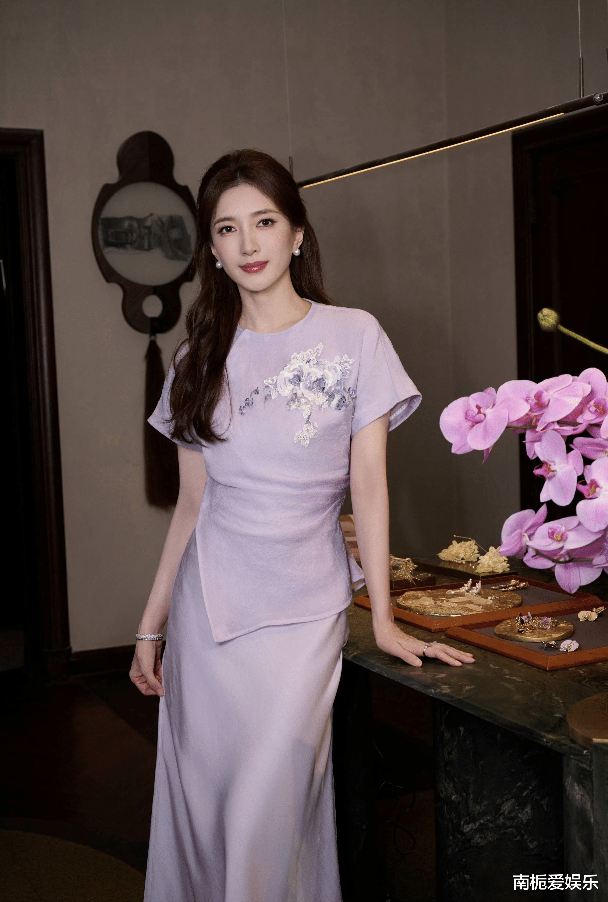 此次大秀摒弃了传统符号的直白堆砌,而是汲取昆曲的淡雅配色与蝴蝶兰的抽象意象。作为品牌大使,江疏影的气质与这一主题不谋而合。团队特意选用了低饱和度的淡紫色作为基底,搭配手工真丝盘扣与精致的蝴蝶兰珠绣,旨在通过服装的语言,讲述一个关于“静谧与雅致”的故事。这不仅是对江疏影个人风格的精准捕捉,更是对当代女性从容气度的一次致敬。