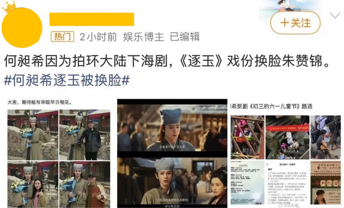 恰逢2026年影视行业政策收紧,《逐玉》制作方为保剧集顺利过审上线,只能紧急启动AI换脸,将何昶希的面部替换为朱赞锦。