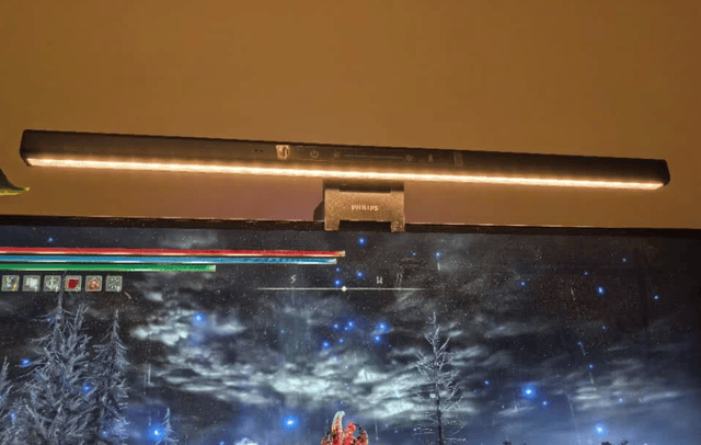 玩游戏外设用什么好?这款屏幕挂灯加入了双传感系统,正常情况下坐到桌前会自动亮灯,离开一段时间后再自动关闭,日常使用确实省事。不过在实际体验中,感应偶尔会不太稳定,出现人没在却突然亮灯的情况。环境光感应则更实用一些,能够根据周围亮度自动调节补光,让桌面亮度尽量维持在一个比较均衡的水平。显色表现相对来说中规中矩,日常使用是可以满足的。