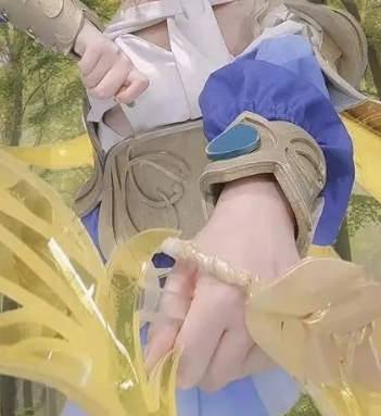 除了造型,神态演绎才是最绝的。静态时她低头轻抚花瓣,睫毛微微颤着,像在听花朵说话;动态时转了个圈,裙摆划出漂亮的弧线,嘴角却还保持着若有若无的笑——这和游戏里艾琳“既天真又坚韧”的性格完美契合。