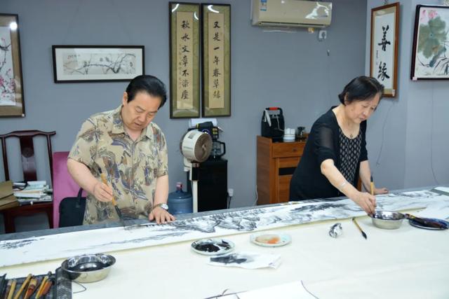 笔会现场,长案铺陈,宣纸如雪,砚池墨润。艺术家们或凝神构思,或挥毫泼墨,顷刻间,一幅幅饱含深情的书画作品跃然纸上。